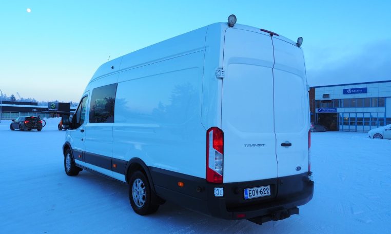 Tarjolla erittäin siisti ja kattavasti varusteltu retkeilyautoksi muutettu Ford Transit pitkänä ja korkeana malliversiona.