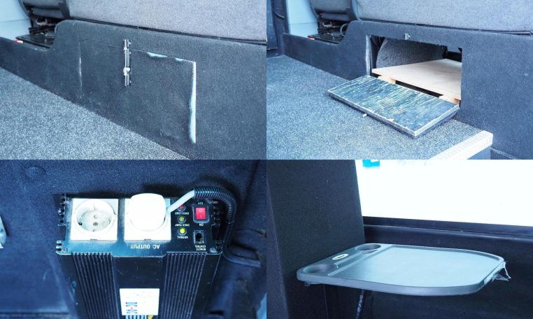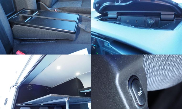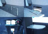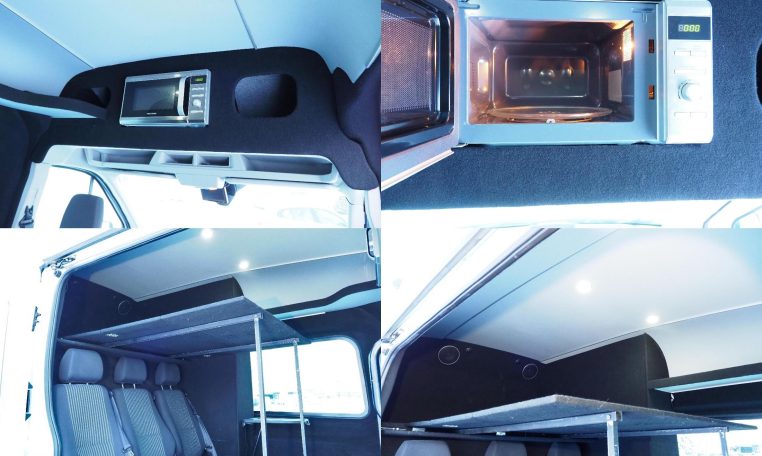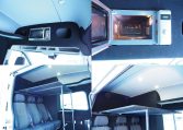 Edessä on 3 istumapaikkaa ja auton keskiosassa 3 paikkaa lisää. Keskipaikkalaisilla on mukavat oltavat, sillä keskiosassa on lukuvalo, verkkovirtapistokkeet, mikroaaltouuni eväiden lämmitykseen, taitettava yläpunkka sekä reilusti jalkatilaa.
